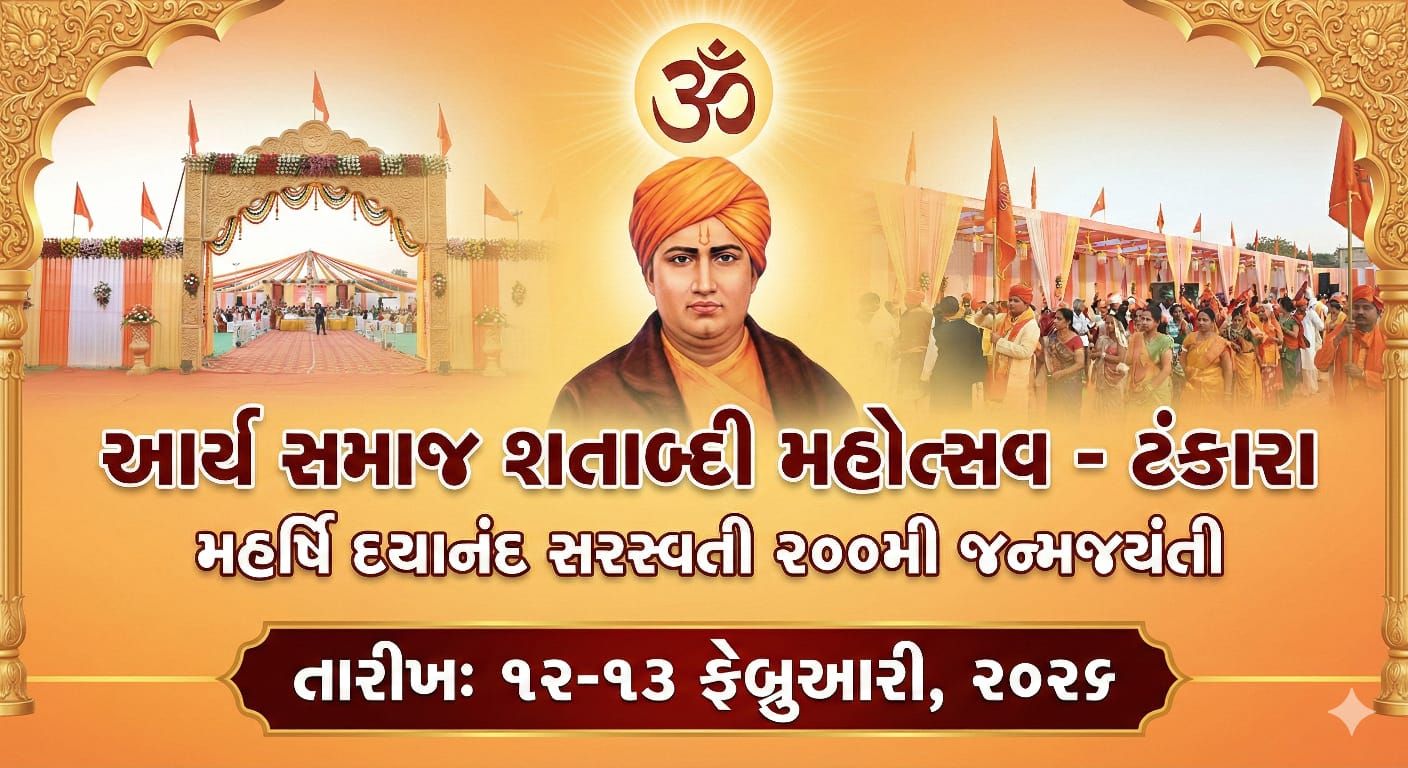 ટંકારા : શ્રી મહર્ષિ દયાનંદ સરસ્વતીની પવિત્ર જન્મભૂમિ ટંકારા સ્થિત અને સેવાના પર્યાય સમાન ‘આર્ય સમાજ ટંકારા’ (ત્રણ હાટડી શેરી) આવતીકાલે 12 ફેબ્રુઆરીએ પોતાના ગૌરવવંતા ૧૦૦ વર્ષ પૂર્ણ કરી રહ્યું છે. આ ઐતિહાસિક અવસર નિમિત્તે બે દિવસય ભવ્ય ‘શતાબ્દી મહોત્સવ’નું આયોજન કરવામાં આવ્યું છે. જે આવતીકાલથી શરૂ થશે.