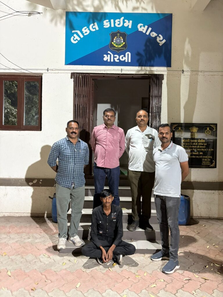 મોરબી: મોરબી એલ.સી.બી. (LCB) અને પેરોલ ફર્લો સ્ક્વોડની ટીમે હત્યાના ગુનામાં આજીવન કેદની સજા ભોગવતા અને વચગાળાની રજા પર મુક્ત થયા બાદ ફરાર થઈ ગયેલા એક કેદીને ગાંધીનગર જિલ્લાના કલોલ ખાતેથી ઝડપી પાડીને ફરી જેલના સળિયા પાછળ ધકેલી દીધો છે.