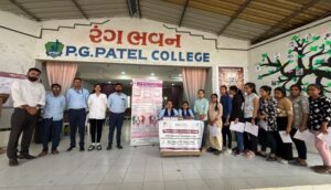 આ આયોજન રાજકોટ LIFE સંસ્થાના સહયોગથી પી. જી. પટેલ કોલેજમાં અભ્યાસ કરતા તમામ વિદ્યાર્થીઓ માટે 100 % ફ્રી થેલેસેમીયા ટેસ્ટ કરવામાં આવ્યું. આ આયોજનમાં કોલેજના તમામ ફેકલ્ટીના વિદ્યાર્થીઓએ પોતાનો થેલેસેમીયા ટેસ્ટ કરાવેલ હતો. આ તકે કોલેજના ટ્રસ્ટી દેવકરણભાઈ આદ્રોજા અને જતિનભાઈ અદ્રોજાએ LIFE સંસ્થામાંથી આવેલ સ્ટાફનો આભાર વ્યક્ત કર્યો હતો