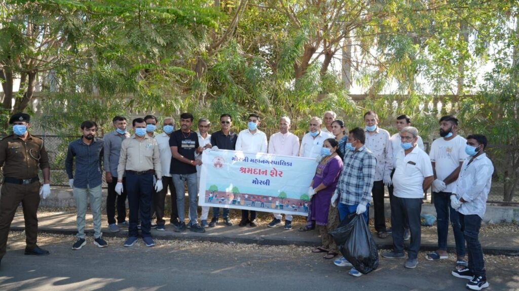મોરબી: મોરબી મહાનગરપાલિકા દ્વારા આજે તા.૨૬ના રોજ અરુણોદય સર્કલથી ધરમપુર મેઈન રોડ સુધી શ્રમદાન ફોર મોરબી કાર્યક્રમનું આયોજન કરવામાં આવ્યું હતું. આ સફાઈ અભિયાનમાં કમિશનર, ડેપ્યુટી કમિશનર, શાખા અધ્યક્ષ, મહાનગરપાલિકા સ્ટાફ, ઉમા ટાઉનશીપ મિત્ર મંડળ અને યંગ ઇન્ડિયા ગ્રુપ સહિત અંદાજિત ૧૯૦ લોકો શ્રમદાનમાં જોડાયા હતા