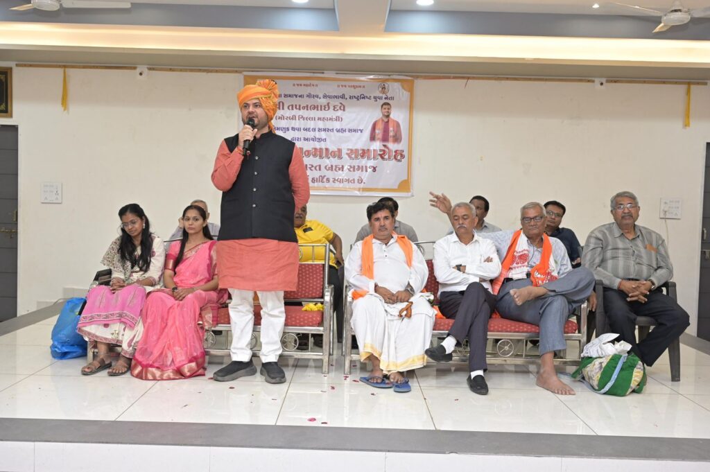 હળવદ શહેર બ્રહ્મસમાજ દ્વારા જિલ્લા ભાજપ મહામંત્રી તપન દવેનો સન્માન સમારોહ યોજાયો