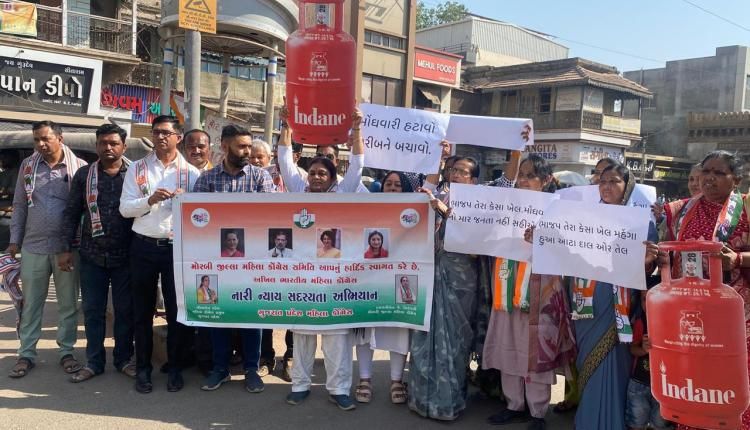 વધતી જતી મોધવારીના વિરોધમાં મોરબી જીલ્લા મહિલા કોંગ્રેસનું વિરોધ પ્રદર્શન