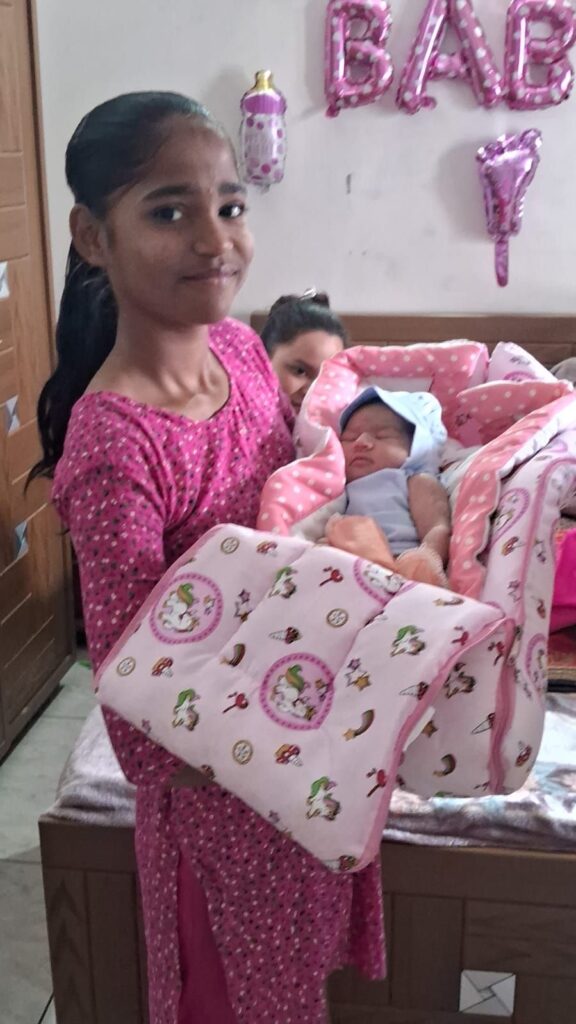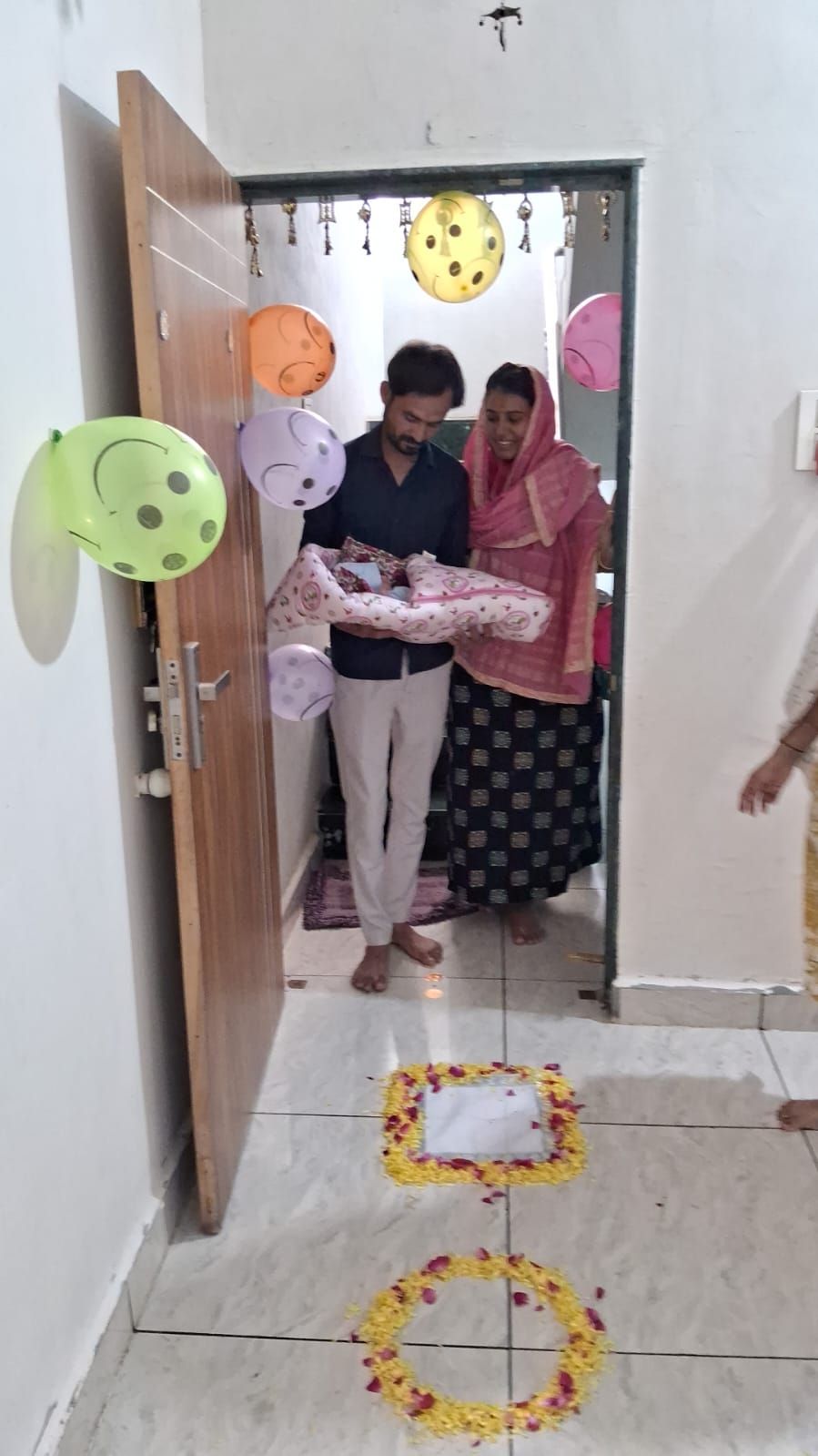 મોરબી : આજના હાઈટેક અને મોર્ડન યુગમાં પણ સમાજના છાનેખૂણે ક્યાંક ને ક્યાંક પુત્ર એષણા ધૂણતી હોવાથી માત્ર પુત્રના જન્મને જ પેડા વંહેંચીને ખુશી મનાવાતી હોવાની વચ્ચે મોરબીના ચાવડા પરિવારે સાચા દિલથી દીકરીને ખરેખર વ્હાલનો દરિયો સમજી પુત્ર કરતા પુત્રી રત્નના જન્મને સવાઈ રીતે ઉજવી દીકરી ઈશ્વરના અમૂલ્ય સંસ્કારના વરદાનથી એક નહિ પણ બે કુળ તારે તેવો સમાજને મેસેજ આપ્યો છે. જેમાં મોરબીના સામાકાંઠે સોઓરડી પાછળ આવેલ વરિયાનગર શેરી નંબર 11માં રહેતા ચાવડા નરેશભાઈ પુંજાભાઈના પુત્ર સુનિલભાઈના ધર્મપત્ની કિંજલબેને પુત્રી રત્નને જન્મ આપતા ચાવડા પરિવારમાં ખુશીની કોઈ સીમા રહી ન હતી. આથી પુત્રીના જન્મને હૈયાના હેતથી વધાવવા આખા ઘરને રંગબેરંગી ફુગ્ગા, ફૂલડા, તેમજ, રોશની અને રમકડા સાથે અનેરી સજાવટ કરવામાં આવી હતી. ચાવડા પરિવારે પુત્રીના જન્મને ફૂલડે વધાવ્યો હતો. જેમાં હોસ્પિટલમાંથી રજા આપ્યા બાદ ઘરે આગમન થતા માતા કિંજલબેન અને નવજાત પ્રેમાળ પુત્રીને દાદી બાલુબેન, લક્ષ્મીબેન, દાદા નરેશભાઈ ચાવડા, પ્રવીણભાઈ ચાવડા, કિશોર, મોટા પપ્પા મનોજભાઈ, મોટા મમ્મી આશાબેન, પિતા સુનિલભાઈ, ફુઈ કાજલબેન, સુરભીબેન, હેતલબેન, બહેન ક્રિષ્ના અને કાકા મુકેશભાઈ ચાવડાએ કુમકુમ તિલક કરી પેડાથી મોઢા મીઠા કરાવી આ વ્હાલસોયી પુત્રીના હૈયાના હેતથી વધામણાં કરી તેના દીર્ઘાયુની શુભકામનાઓ આપી હતી.