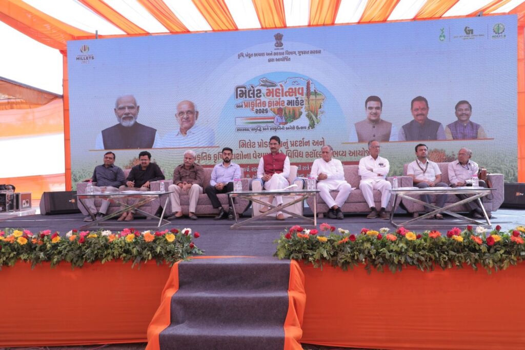 આ પ્રસંગે પ્રાસંગિક ઉદબોધન કરતા રાજ્ય યોગ બોર્ડના ચેરમેનશ્રી શિશપાલજીએ જણાવ્યું હતું કે, મિલેટ્સ એ માત્ર ખોરાક નથી પણ આપણી સંસ્કૃતિ છે અને એ સંસ્કૃતિના પુનઃ જાગરણનો આ ઉત્સવ છે. વર્ષ ૨૦૨૩ને આંતરરાષ્ટ્રીય મિલેટ્સ વર્ષ તરીકે જાહેર કરવાના વડાપ્રધાનશ્રી નરેન્દ્ર મોદીના પ્રયાસોને લીધે આજે ‘શ્રી અન્ન’ વૈશ્વિક સ્તરે ઓળખ પામ્યું છે. તેમણે વધુમાં ઉમેર્યું કે, જીવનમાં સ્વસ્થ રહેવા સાત્વિક આહાર અનિવાર્ય છે. જેમ આપણો ‘ફેમિલી ડોક્ટર’ હોય છે, તેમ શુદ્ધ અને રસાયણમુક્ત આહાર માટે દરેક નાગરિકે એક ‘ફેમિલી ફાર્મર’ રાખવો જોઈએ, જે આપણને સીધો ખેતરેથી શુદ્ધ ખેત ઉત્પાદનો પૂરો પાડી શકે. મુખ્યમંત્રીશ્રી ભૂપેન્દ્રભાઈ પટેલના ‘મેદસ્વીતા મુક્ત ગુજરાત’ અભિયાનમાં મિલેટ્સનું યોગદાન નિર્ણાયક સાબિત થઈ રહ્યું છે તેવું તેમણે વધુમાં જણાવ્યું હતું.
