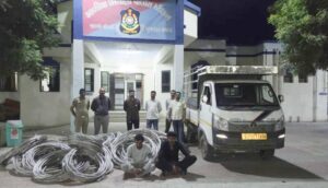 પાવરગ્રીડ લાઈનમાંથી વાયર ચોરી કરનાર ઈસમોને પોલીસે અંજીયાસર નજીકથી ઝડપી લઈને પોલીસે ૧૩.૫૦ લાખના કોપર વાયર અને વાહન કીમત રૂ ૪ લાખ સહીત કુલ રૂ ૧૭,૫૦,૦૦૦ નો મુદામાલ કબજે લઈને કાયદેસર કાર્યવાહી હાથ ધરી છે