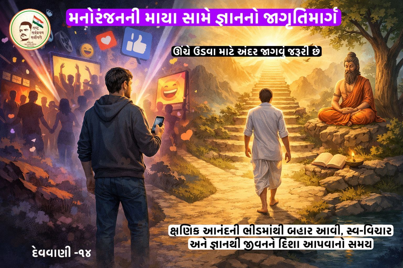 મનોરંજનની માયા સામે જ્ઞાનનો જાગૃતિમાર્ગ :ઊંચે ઉડવા માટે અંદર જાગવું જરૂરી છેક્ષણિક આનંદની ભીડમાંથી બહાર આવી, સ્વ-વિચાર અને જ્ઞાનથી જીવનને દિશા આપવાનો સમય