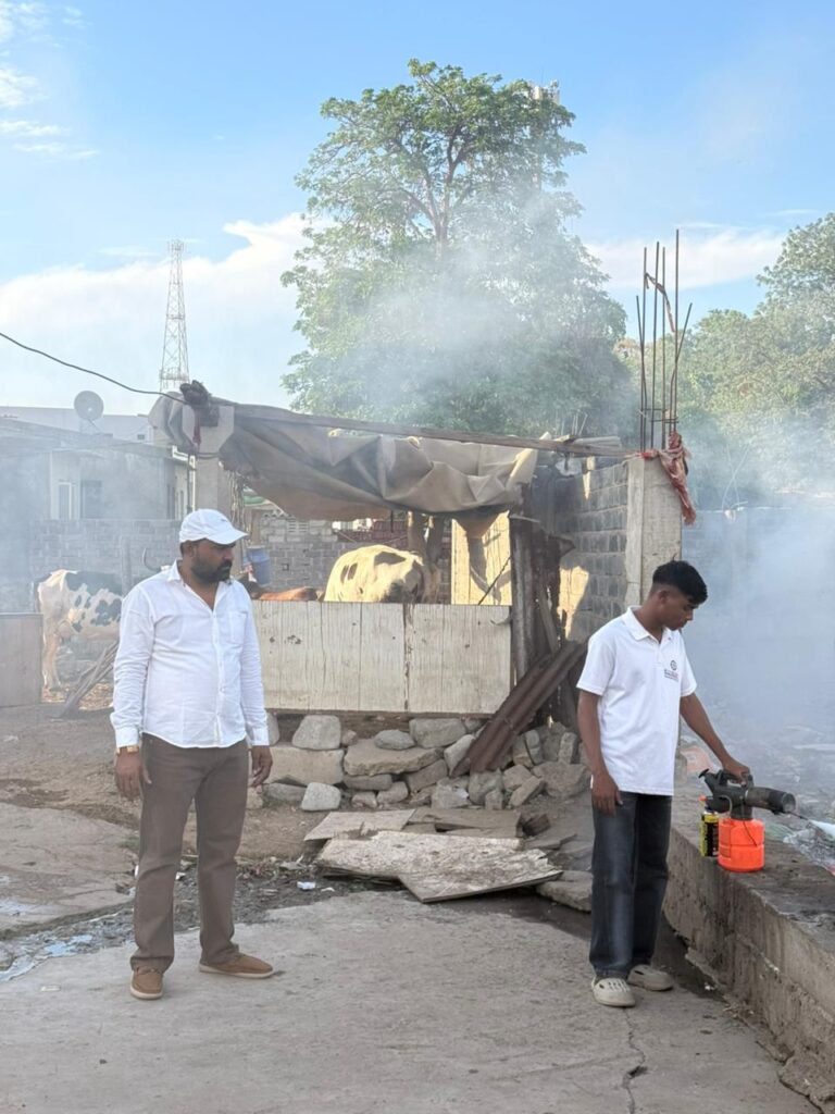 મચ્છરજન્ય રોગચાળાને નાથવા ડૉ. દેવેન રબારીના માર્ગદર્શન હેઠળ રબારીવાસ, વણકરવાસ અને વાલ્મિકીવાસમાં જનજાગૃતિ સાથે દવાનો છંટકાવ કરાયો