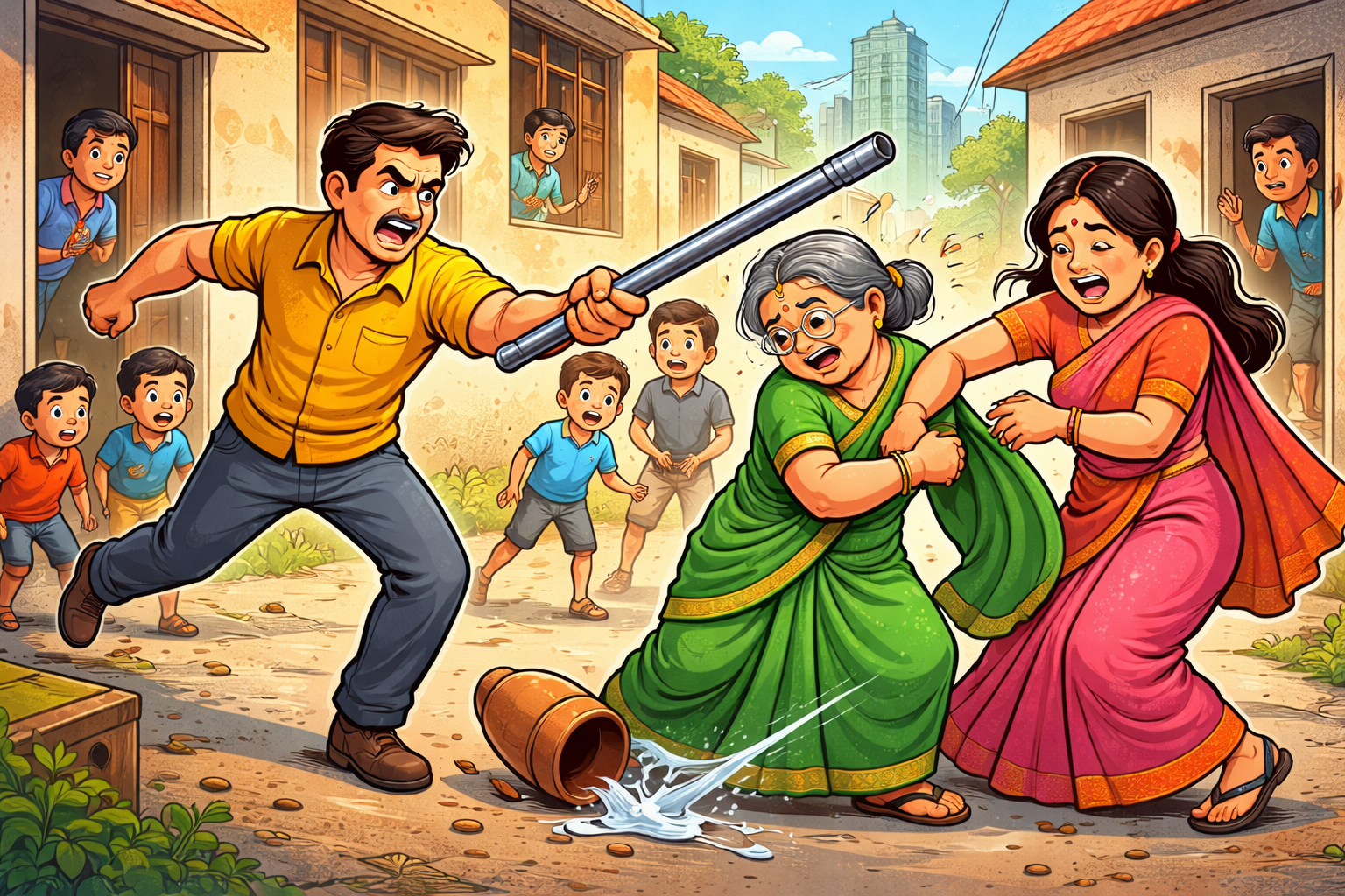 હળવદ તાલુકાના જુના અમરાપર ગામે રહેતા ફરિયાદી વનિતાબેન ભરતભાઇ જાબુંકિયાએ પાડોશમાં જ રહેતા આરોપી શંકરભાઇ પ્રેમજીભાઈ જાબુંકિયા વિરુદ્ધ ફરિયાદ નોંધાવતા જાહેર કર્યું હતું કે, ગત તા.7ના રોજ સાંજના સમયે શેરીમાં છોકરાવ રમતા હતા ત્યારે આરોપી શંકર પાઇપ લઈ છોકરાઓની પાછળ દોડી મારવા જતા શેરીમાં દેકારો થતા ફરિયાદી બહાર આવ્યા હતા. બાદમાં આરોપી સાથે વાતચીત કરતા આરોપી એકદમ ઉશ્કેરાઈ ગયો હતો અને પાઇપ વડે વનિતાબેનને માર મારતા વનીતાબેનના સાસુ બચાવવા માટે વચ્ચે પડતા આરોપી શંકરે વનિતાબેનના સાસુ લાભુબેન કાનજીભાઈ જાંબુકીયાને પણ પાઇપ વડે માર મારતા બનાવ અંગે હળવદ પોલીસ મથકમાં ફરિયાદ નોંધાવી હતી.